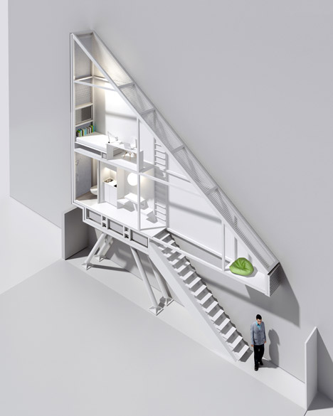 On je zatim stupio u kontakt sa Keretom i pozvao ga da učestuje u ovom projektu. Ubrzo su počeli da zajedno projektuju trouglastu kuću u kojoj samo jedna osoba može da živi i radi. "Prostor zahteva smisao za humor, budući da ne možete dugo da se zadržite u kući", našalio se Szczesny.