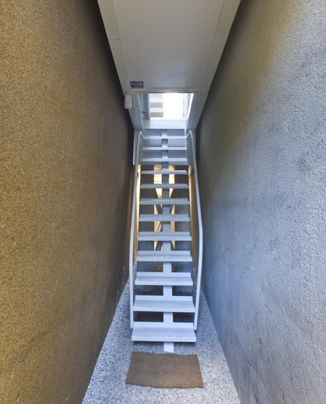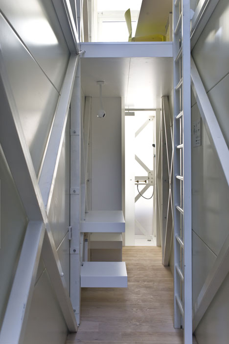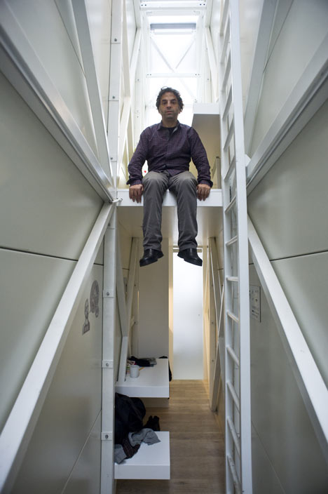 Arhitekta je izdigao kuću iznad površine tla kako bi ubacio stepenište koje stanara vodi do ulaza. Unutrašnje prostorije su raspoređene vertikalno, jedna iznad druge. Na pitanje kako su uspeli da nameste neophodan nameštaj Szczesny je odgvorio: "Sve je urađeno po narudžbini i, naravno, sve je moralo da se ugura".