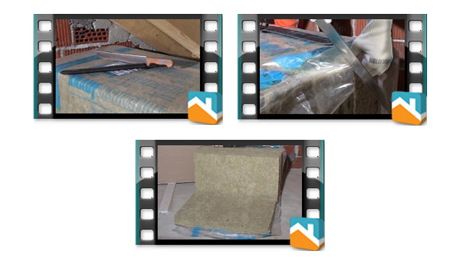 6. Tablu otvorene kamene vune treba potom iseći za 0,5 – 1 cm šire od razmaka rogova.